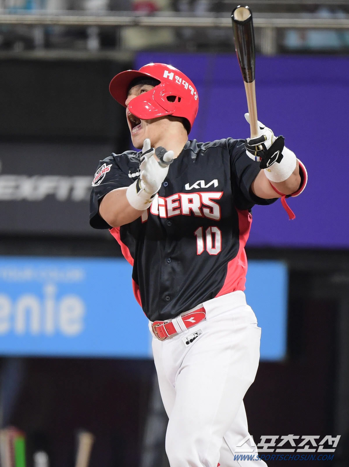 4-8 추격을 허용한 9회초에는 중월 투런 쐐기 홈런을 날리며 KT의 추격의지를 꺾었다. 홈런 순간 허벅지 근육통을 느껴 불편한 다리로 천천히, '괴롭게' 다이아몬드를 돌고 들어온 이적생을 KIA 선수들이 열렬히 환영했다.