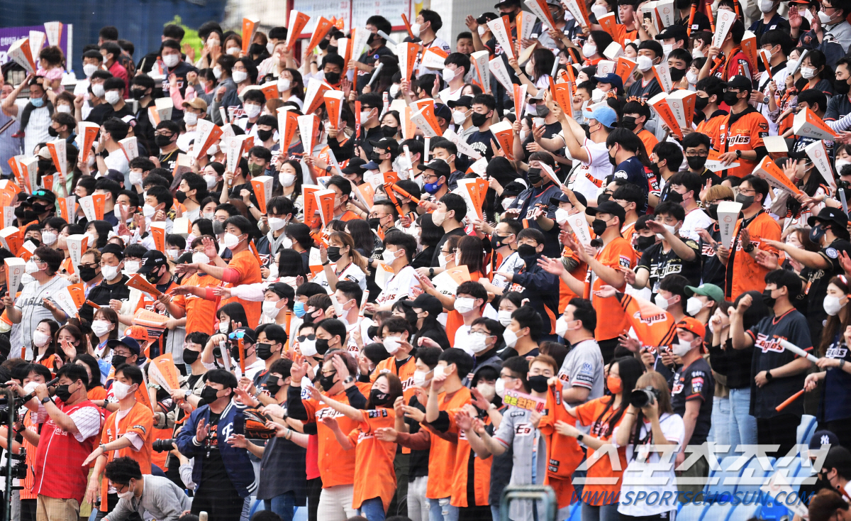 코로나19 때문에 금지됐건 육성응원이 풀리자, 대전야구장 그라운드와 관중석에 에너지가 넘친다. 육성응원이 허용된 시점부터 한화가 펄펄 날아올랐다. 외국인 '원투펀치'가 부상으로 빠져, 위기상황이 분명한데, 팀 사이클이 고점으로 치솟았다.