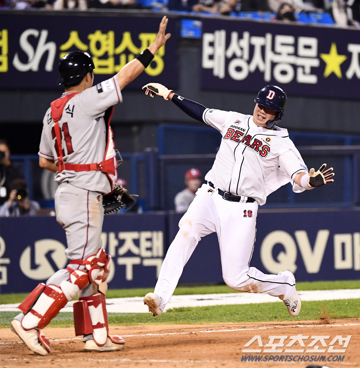 연장 10회말 두산이 천금의 찬스를 잡았다. 2사 1루 상황서 김재환이 우익선상 깊숙한 2루타를 날린 것. 하지만 강승호의 발이 홈까지는 미치지 못했다. 이어 등장한 김재호가 잘 맞은 타구를 만들어냈지만, 중견수 최지훈의 글러브에 걸렸다.