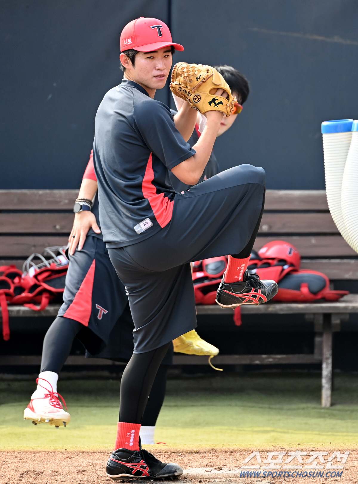 '대투수' 양현종의 쉐도우 피칭을 바로 등 뒤에서 지켜보던 김정빈은 궁금증이 생겼고 곧바로 질문공세를 이어갔다.