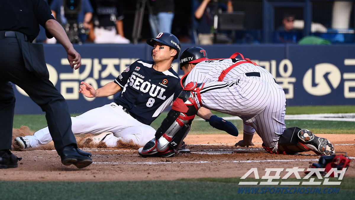 11일 잠실 LG전. 3회초 페르난데스의 안타 때 2루 주자 안권수가 홈을 파고들고 있다.박재만 기자 pjm@sportschosun.com