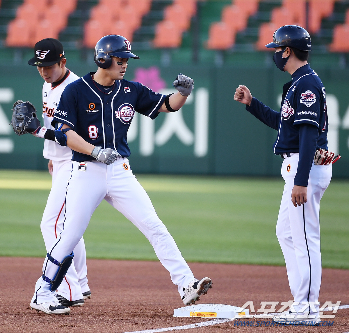 수비도 좋았다. 6회말 히어로즈 김수환이 때린 타구가 센터 방향으로 쭉쭉 뻗어 날아갔다. 중월 2루타가 되는 듯 했다. 그런데 중견수 안권수가 타격음과 동시에 뒤로 이동하더니, 펜스를 등지고 이 타구를 잡았다. 1안타 무실점 호투를 이어가던 선발 이영하의 어깨를 가볍게 해 준 호수비였다.