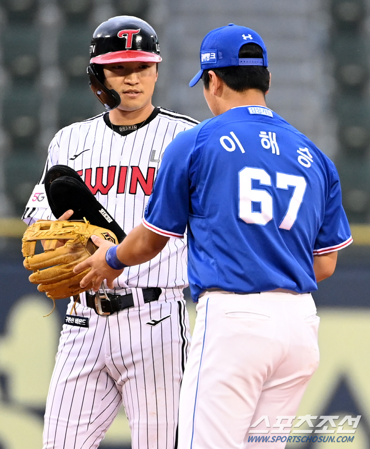 [잠실=스포츠조선 허상욱 기자] LG 박해민이 도루 과정에서 자신과 충돌한 '친정팀 후배' 이해승의 상태를 걱정하며 챙겨주는 훈훈한 장면을 연출했다.