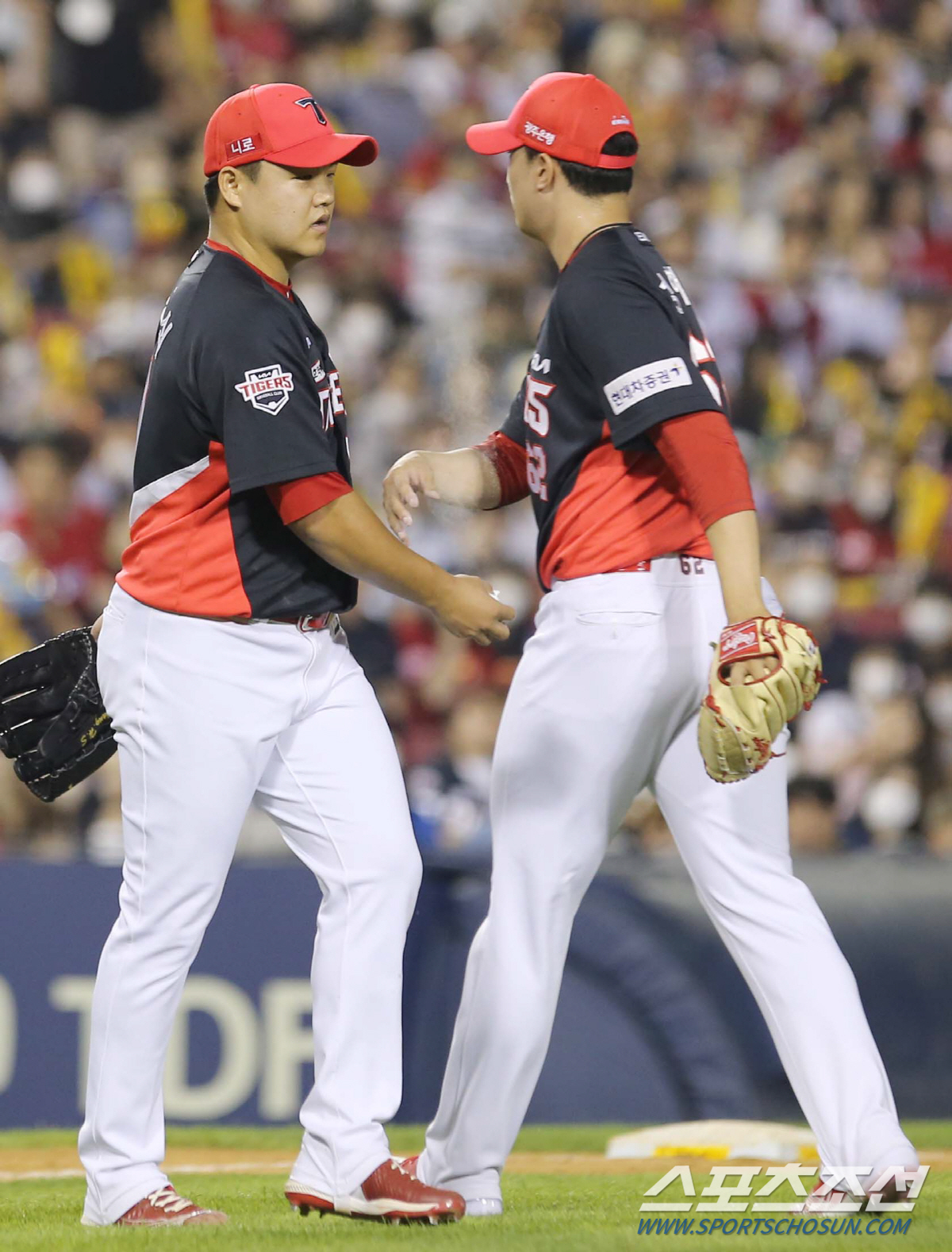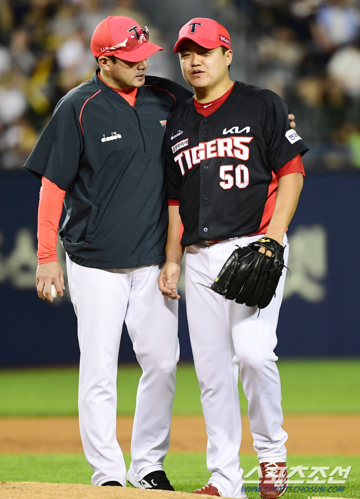 이어 장현식이 페르난데스를 상대로 연속해서 두 개의 볼을 던지자, 서재응 코치가 다시 마운드에 올랐다. 이번에는 장현식을 교체하기 위해서였다.