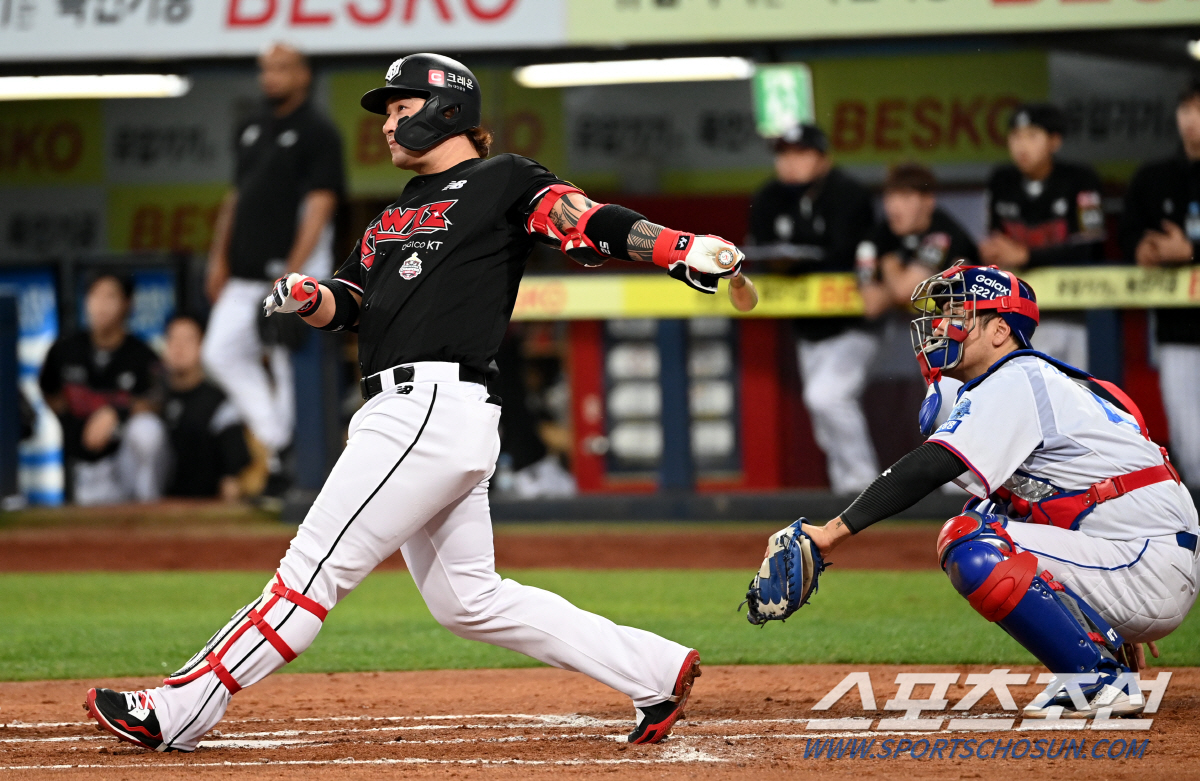 [대구=스포츠조선 권인하 기자]KT 위즈가 '약속의 땅' 대구에서 타격 폭발로 다시 5할 승률에 1승차로 다가섰다.