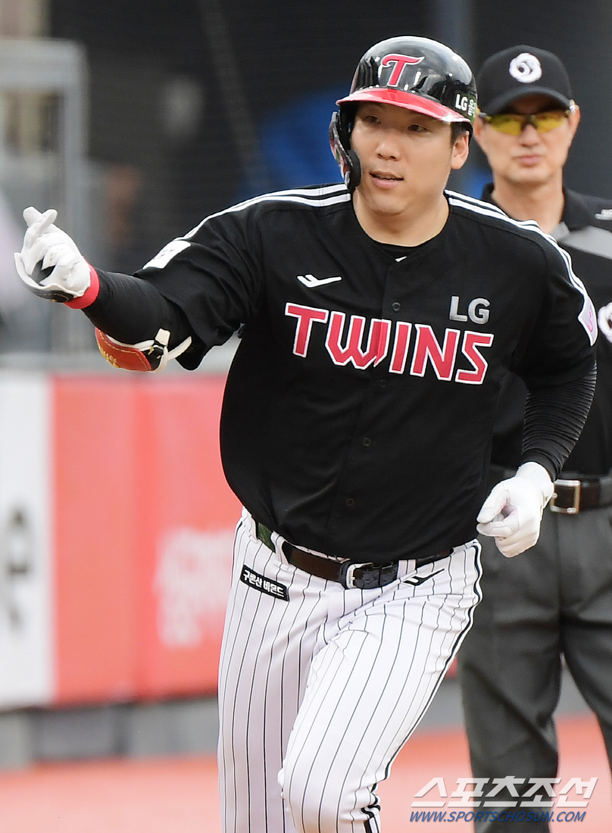 26일 수원 KT위즈파크에서 열린 LG 트윈스와 KT 위즈 경기. 1회초 1사 1루 김현수가 투런포를 치고 들어와 축하받고 있다. 수원=정재근 기자 cjg@sportschosun.com/2022.6.26/