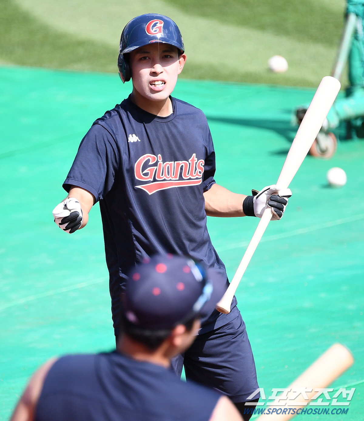 뜨거운 태양 아래 롯데 외야수 황성빈은 누구보다 열심히 배트를 돌리고 또 돌렸다.