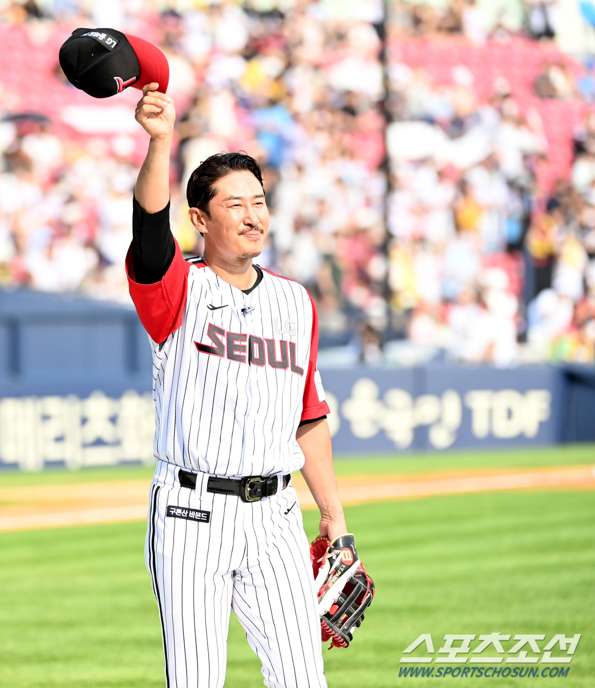 2022 KBO리그 롯데 자이언츠와 LG 트윈스의 경기가 3일 잠실야구장에서 열렸다. 오늘 은퇴식을 갖는 박용택이 팬들의 환호와 함꼐 그라운드에 나서고 있다. 잠실=허상욱 기자wook@sportschosun.com/2022.07.03/