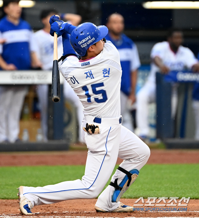 4-0으로 앞선 1회말 2사 2루에서 첫 타석에 선 이재현은 LG 선발 이민호의 145㎞ 가운데 직구를 풀스윙으로 당겨 왼쪽 담장을 넘겼다. 비거리 121m의 대형홈런.