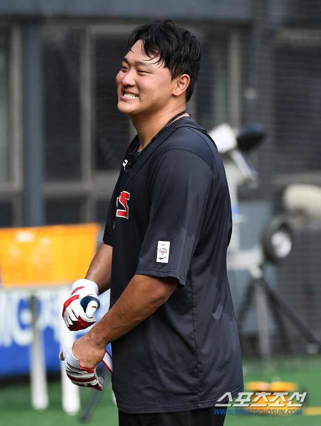 홍창기는 김호 코치에게 배트를 건네며 문제없다는 제스처를 취했다. 모범생 문성주는 무더운 날씨 속 배트를 쉼 없이 돌리며 경기를 준비했다.