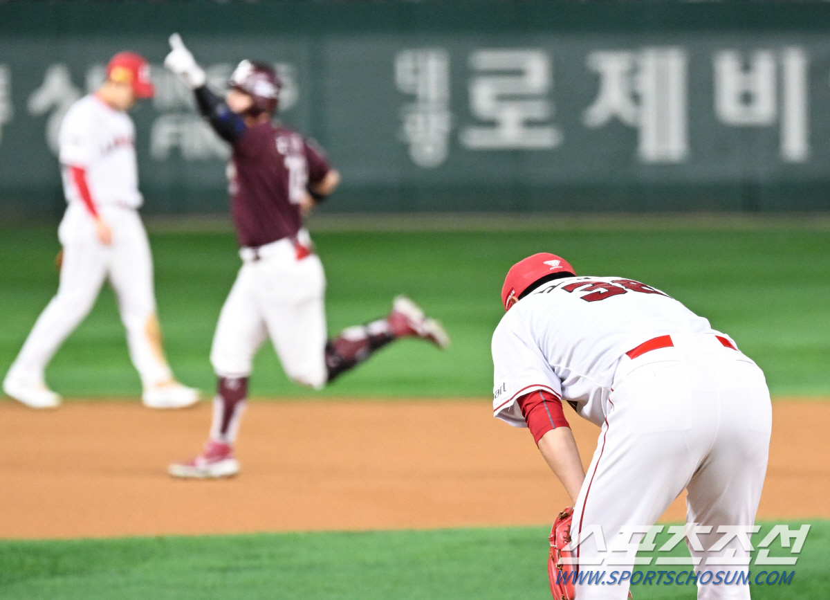 1일 인천 랜더스필드에서 SSG와 키움의 한국시리즈 1차전 경기가 열렸다. 9회초 1사 2루에서 키움 전병우가 역전 투런홈런을 날렸다. 그라운드를 돌고 있는 전병우. 인천=송정헌 기자songs@sportschosun.com/2022.11.01/