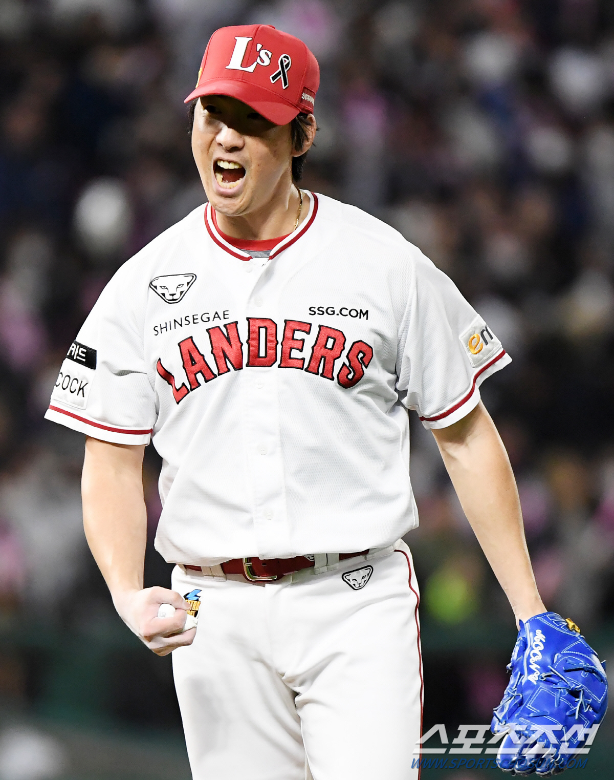 문승원은 시리즈 1차전에서 쾌청했다. 선발 김광현에 이어 6회 2사 후 마운드에 올라 1⅓이닝 4타자를 퍼펙트로 봉쇄했다. 최고 시속 151㎞ 패스트볼에는 힘이 넘쳤다. 슬라이더 최고 구속도 141㎞에 달했다. 커브, 체인지업, 포크볼까지 두루 섞어 키움 타선의 예봉을 피했다. 가장 중요한 순간 마운드에 올라가는 불펜 에이스. 선발진에 비해 불안했던 SSG 불펜진의 수호신 역할을 기대할 만 했다.