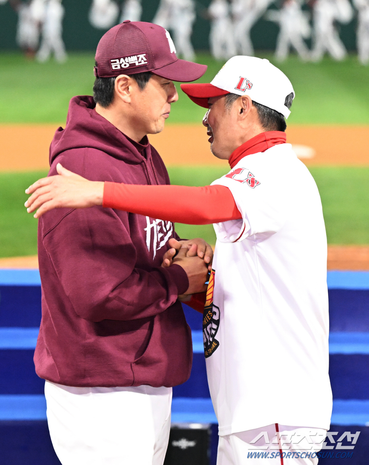 두 손을 맞잡고 시즌을 마친 이들은 내년 시즌에도 치열한 전쟁을 펼칠 예정이다. 김 감독은 한국시리즈 5차전을 앞두고 재계약을 보장받았고, 홍 감독은 9일 키움과 3년 총액 14억원(계약금 2억원, 연봉 4억원) 조건에 도장을 찍었다.