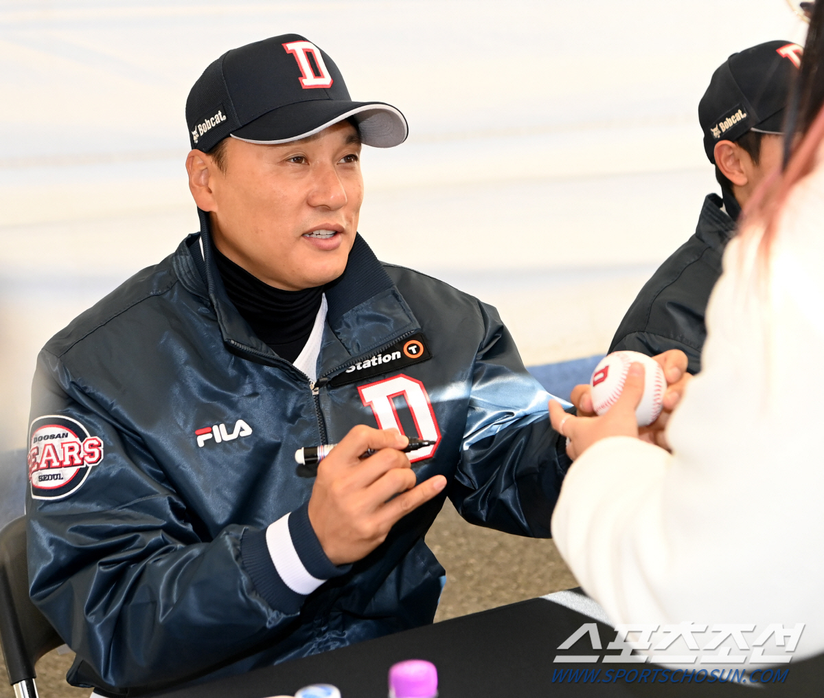 두산 베어스와 '최강야구' 최강 몬스터즈의 경기가 20일 잠실야구장에서 열린다. 경기 전 진행된 사인회에서 두산 이승엽 감독이 팬들과 만남을 갖고 있다. 잠실=허상욱 기자wook@sportschosun.com/2022.11.20/