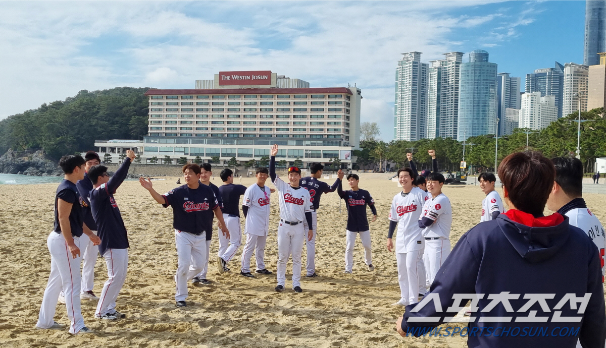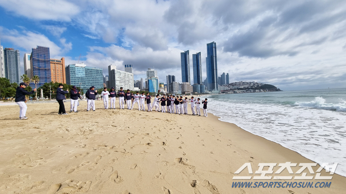 이날 오전 10시부터 해운대 백사장에서 요가 트레이닝을 받았고, 뒤이어 축구 대결을 펼쳤다. 선후배가 즐겁게 어울렸다. 프로야구 선수들답게 승부욕도 엄청났다. 지난 아쉬움과 묵은때는 파도에 씻겨내려갔다.