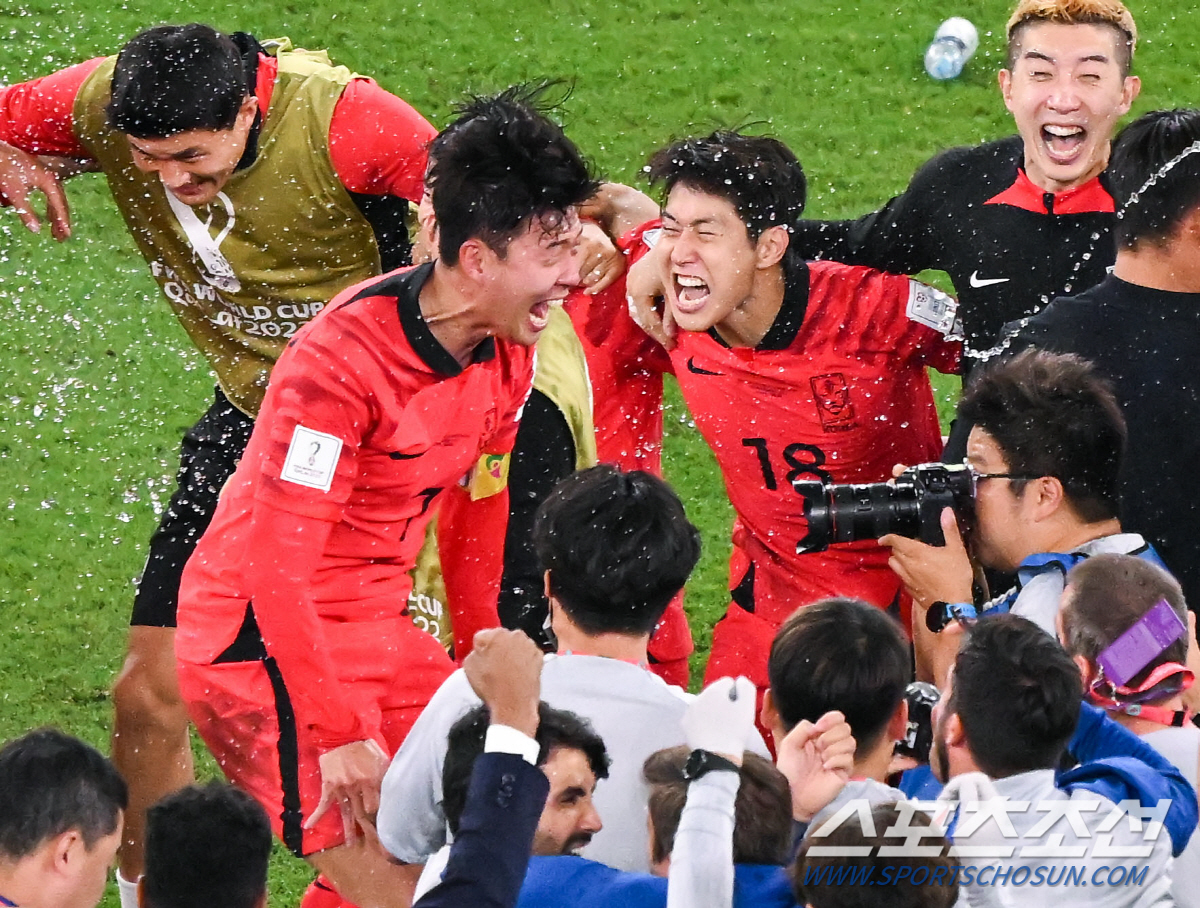 피치 위에서 우루과이-가나전 종료를 간절하게 기다리던 선수들은 16강 진출이 확정된 뒤에야 마음껏 환호하고 눈물을 쏟았다. 태극기를 둘러메고, 게임 리그오브레전드의 세계대회(롤드컵)에서 화제가 된 문구 '꺾이지 않은 마음'이 씌여진 플래카드를 들고 나와 기뻐했다.