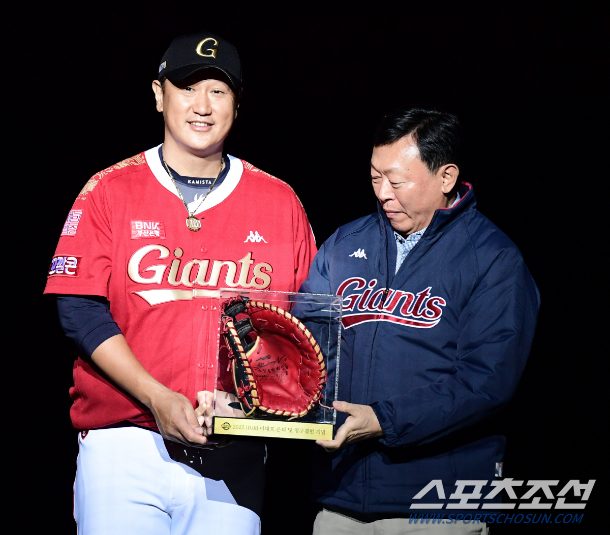롯데는 2030부산세계박람회(부산엑스포) 유치전에 적극 참여중이다. '홍보 첨병' 자이언츠의 역할이 한층 더 커졌다. 지난해 7월 신 회장이 7년여만에 사직구장을 방문한데 이어, 10월에는 간판스타 이대호의 은퇴식에 직접 참여한 것이 그 중요성을 말해준다.