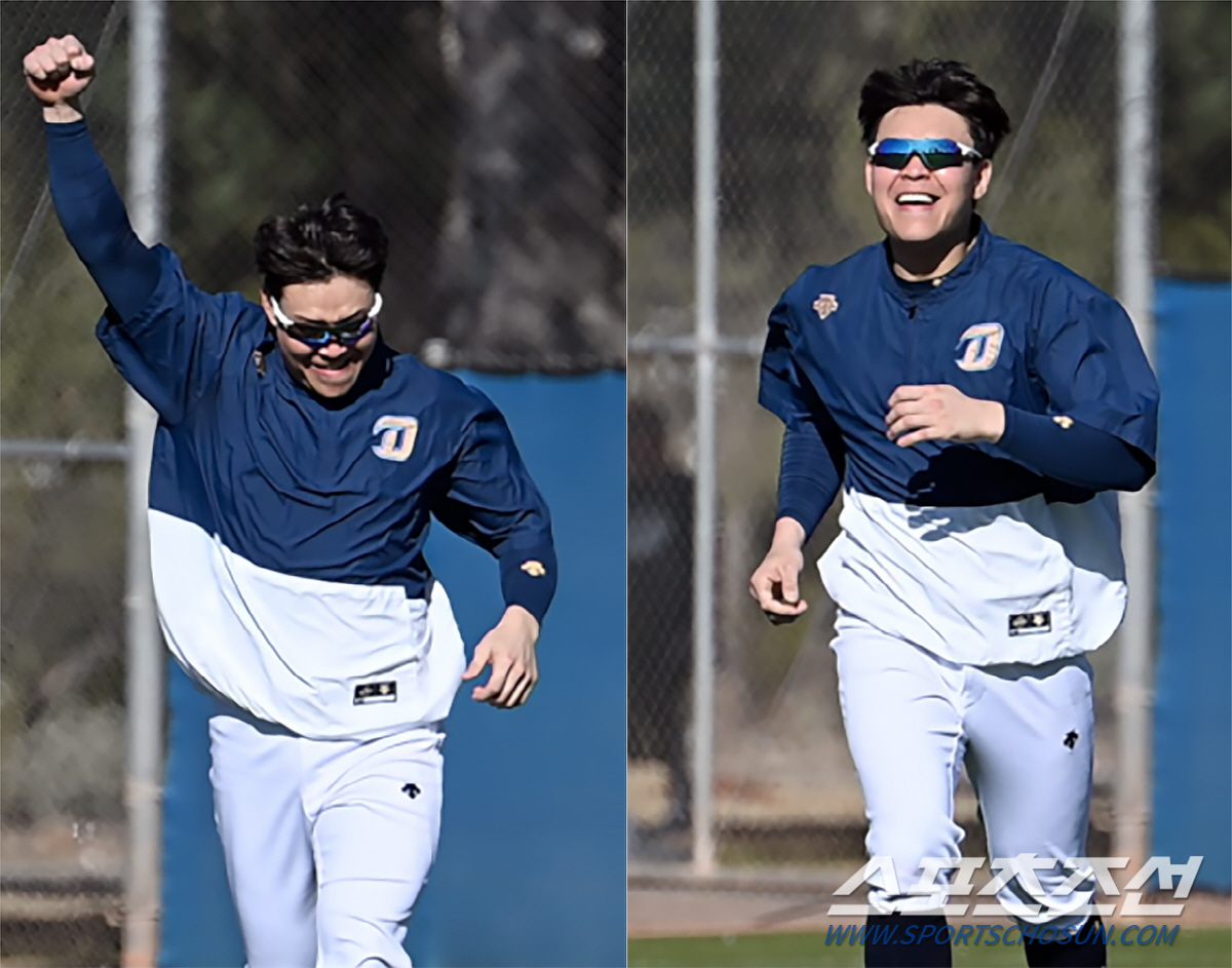 | 기운 불어넣는 박건우의 큰 외침에 박세혁이 손을 번쩍 들며 웃었다. 애리조나(미국)=정재근 기자 |