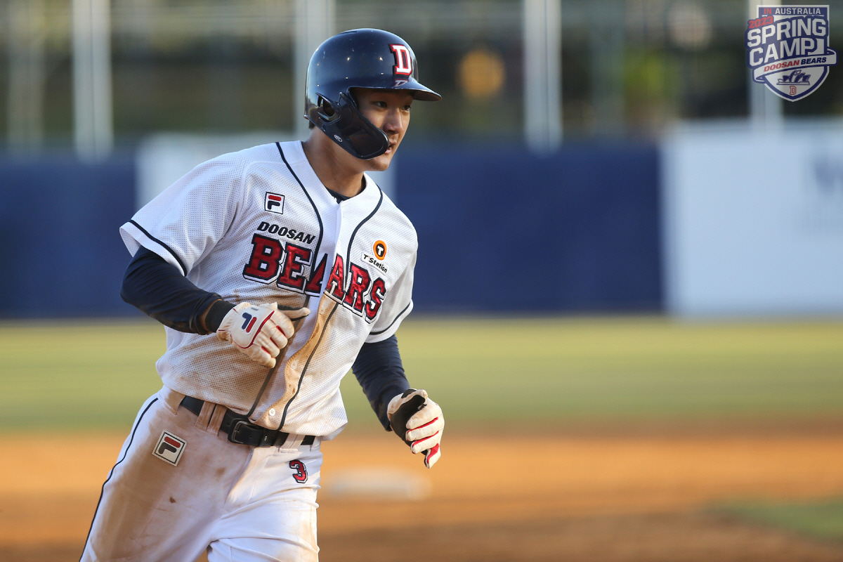 안재석은 지난 15일 호주 시드니 블랙타운 인터내셔널 야구장에서 첫 자체 청백전에 백팀 유격수 겸 2번타자로 선발 출장해 4타수 2안타 1도루 1득점으로 맹활약을 했다.