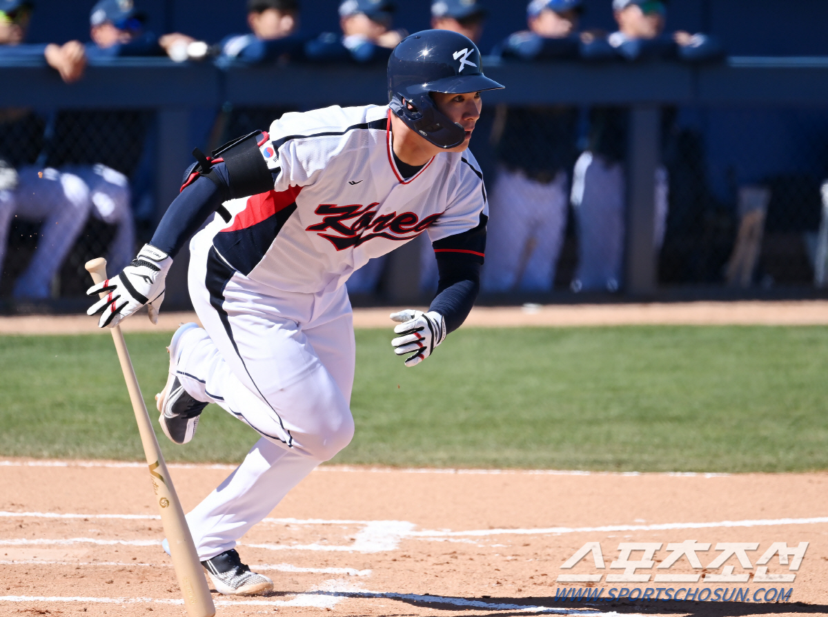 17일(한국시간) 미국 애리조나 투손 WBC 대표팀 캠프. 대표팀이 NC와 연습경기를 했다. 오지환이 안타를 치고 있다. 애리조나(미국)=정재근 기자 cjg@sportschosun.com/2023.2.17/