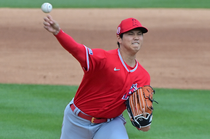 오타니는 1일(한국시각) 애리조나 메사에서 열린 오클랜드 애슬레틱스와의 연습경기에 선발 등판, 어김없는 위력을 뽐냈다.
