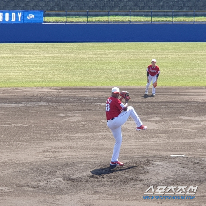 삼성전에 피칭하는 애니 로메로. 오키나와=정현석 기자 hschung@sportschosun.com