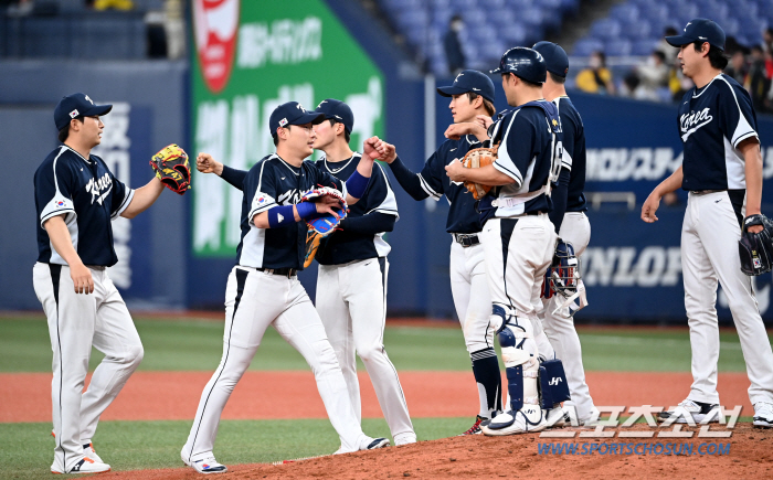 2023 월드베이스볼클래식(WBC) 한국대표팀과 한신의 공식 평가전이 7일 일본 오사카 교세라돔에서 열렸다. 한국대표팀이 7대4로 승리했다. 경기 종료 후 선수들이 기쁨을 나누고 있다.오사카=허상욱 기자wook@sportschosun.com/2023.03.07/