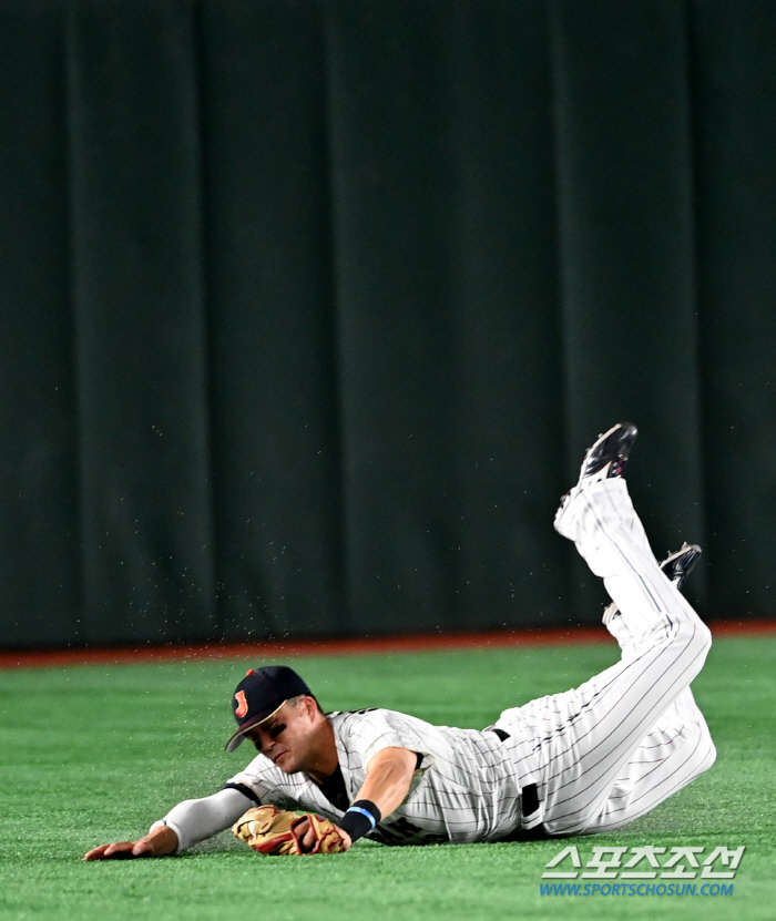 2023 월드베이스볼클래식(WBC) 한국과 일본의 경기가 10일 일본 도쿄돔에서 열렸다. 5회초 무사 1루 일본 중견수 눗바가 한국 김하성의 타구를 몸을 날려 잡아내고 있다. 도쿄(일본)=허상욱 기자wook@sportschosun.com/2023.03.10/