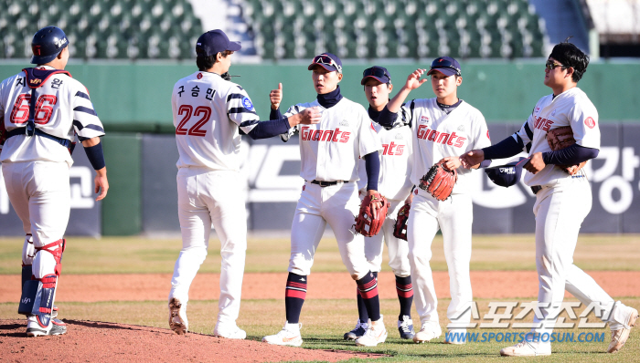 '40억 투수' 한현희는 이날 선발로 나섰다. 4이닝 동안 두산 타선을 단 2안타로 꽁꽁 묶으며 기선을 제압했다. 직구와 슬라이더 2피치가 잘 먹혔다. 최고 144㎞의 직구에 곁들여진 130㎞ 미만의 느린 슬라이더 궁합이 잘 맞았다. 올해부터 롯데에 합류한 포수 이정훈은 한현희의 호투를 이끄는 한편, 양찬열의 도루를 멋지게 저지했다.