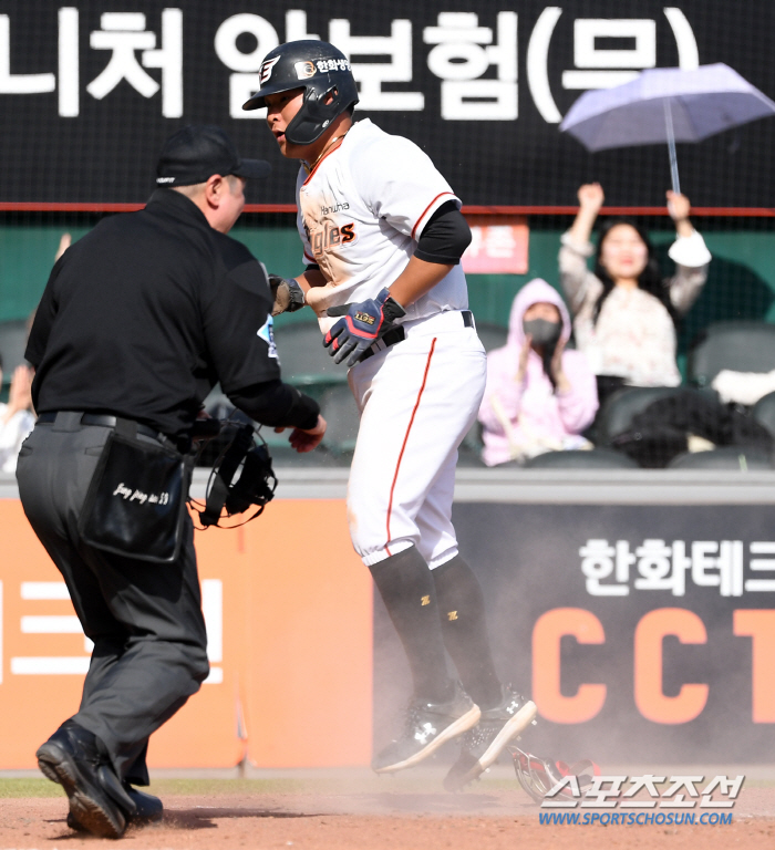 8회말 2사 1,3루. 1B 상황에서 SSG 오원석이 1루 주자를 견제하기 위해 공을 던진 순간. 3루 주자 김태연은 홈을 향해 이를 악물고 뛰었다. 주자를 확인한 1루수가 홈을 향해 재빨리 송구를 이어갔지만, 김태연의 헤드퍼스트 슬라이딩이 포수의 태그보다 조금 더 빨리 홈 베이스에 닿으며 동점을 만들어냈다.