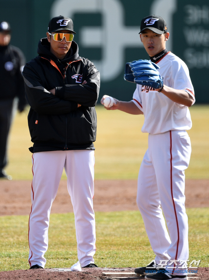 이어 "하이 패스트볼이 효과를 보고 있다. 포수 미트 위치보다 공 1~2개 정도 살짝 높게 보고 던진다. 그래야 공이 잘 눌려 낮게 들어간다"고 했다.