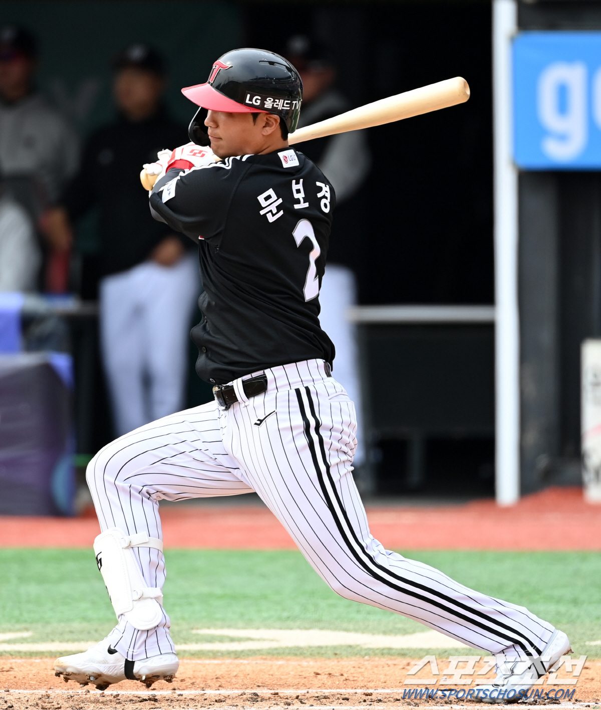 2023 KBO리그 시범경기 LG 트윈스와 KT 위즈의 경기가 23일 수원KT위즈파크에서 열렸다. 2회초 LG 문보경이 안타를 치고 있다. 수원=허상욱 기자wook@sportschosun.com/2023.03.23/
