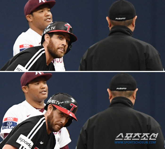 성큼성큼 달려 여유 있게 2루 베이스에 도착한 오스틴이 심판을 향해 타임을 요청한 후 보호장구를 건네기 위해 베이스를 벗어났다.