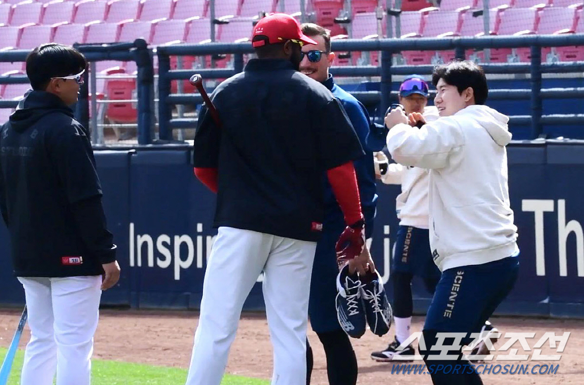 박민우는 훈련을 하고 있는 KIA 선수들을 찾아 인사했다. 소크라테스와 하이파이브를 나누고 소크라테스 응원 댄스도 선보였다. FA 대선배인 최형우에게도 깍듯하게 폴더 인사를 했다.