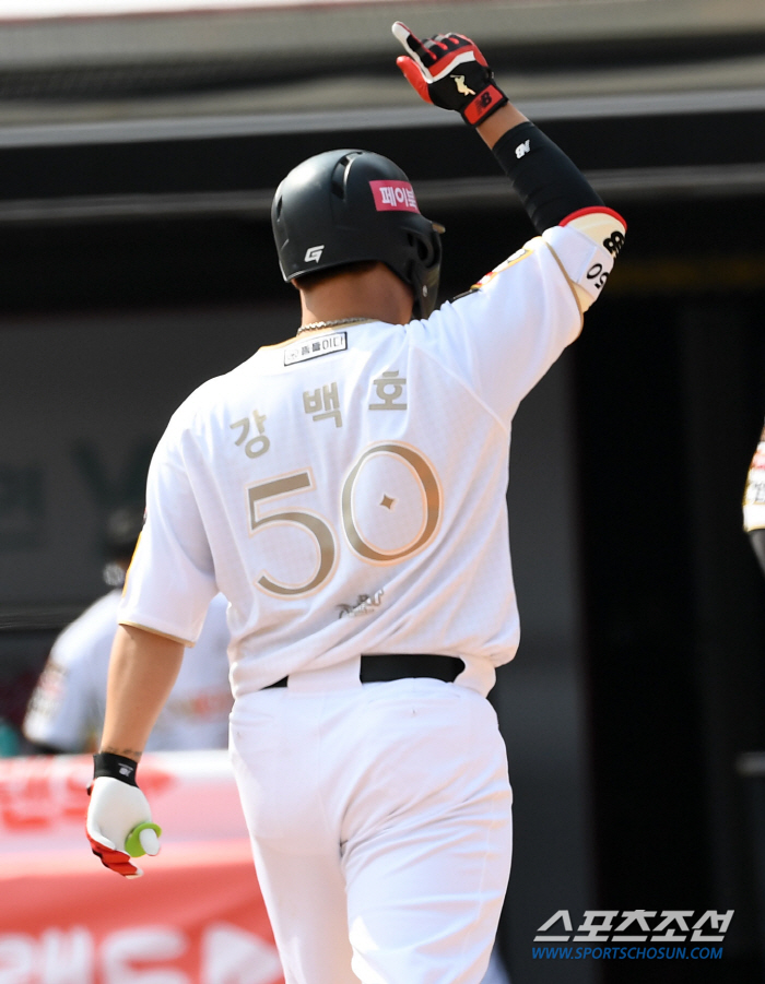 2023 KBO리그 KT 위즈와 LG 트윈스의 경기가 1일 수원 KT위즈파크에서 열렸다. 3회말 1사 KT 강백호가 솔로포를 날린 뒤 환호하고 있다. 수원=박재만 기자 pjm@sportschosun.com/2023.04.01/