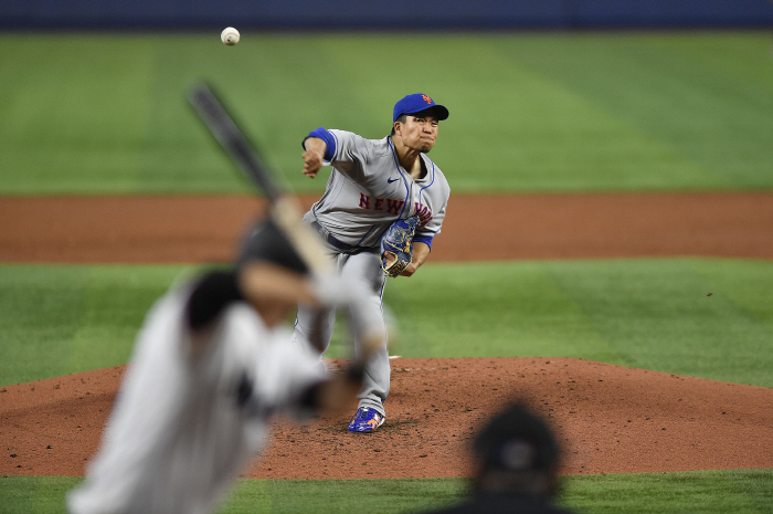 뉴욕 메츠의 센가 고다이(30)는 이날 마이애미 말린스를 상대로 메이저리그 데뷔전을 치렀다. 5⅓이닝 3안타 1실점하고 승리투수가 됐다. 최고 시속 159.3㎞, 평균 155.8㎞를 기록한 직구와 타자 앞에서 갑자기 떨어지는 '유령 포크볼'을 앞세워 삼진 8개를 잡았다.