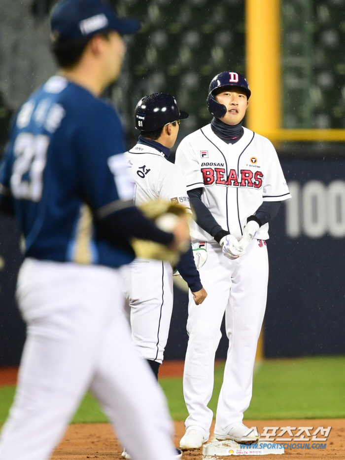 이 감독은 교체없이 믿음을 실어줬고, 김인태는 응답했다. 0-0으로 맞선 8회말 1사에서 양의지가 볼넷을 골라냈다. 이어 김인태가 2S에서 김시훈의 포크볼을 공략해 중견수 오른쪽으로 향하는 2루타를 만들어냈다. 중견수 실책까지 겹치면서 양의지는 홈을 밟았고, 이날 경기 결승타가 됐다.