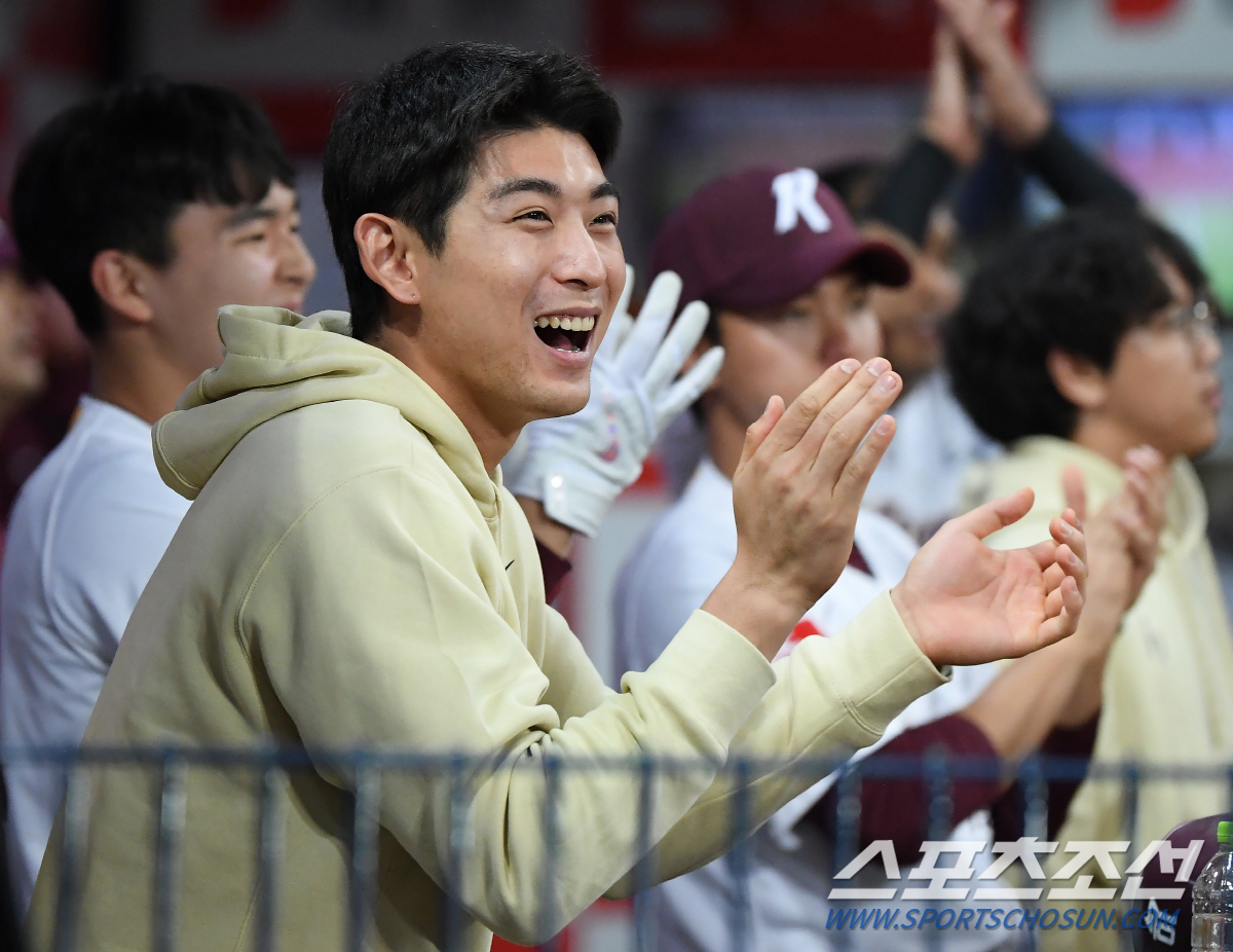 5일 서울 고척스카이돔에서 열린 LG 트윈스와 키움 히어로즈 경기. 더그아웃에서 이정후가 응원하고 있다. 고척=정재근 기자 cjg@sportschosun.com/2023.4.5/