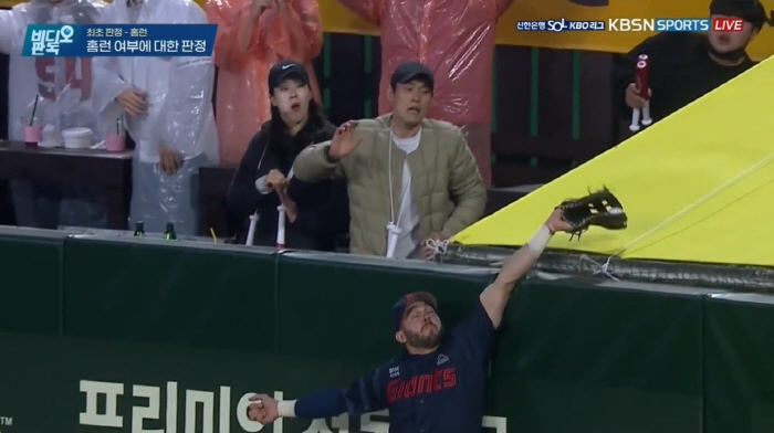 "처음엔 거의 잡았는데 아깝다, 생각했다. 그 다음 인플레이 상황이니까 주자들을 지켜봤다. 그런데 심판이 홈런 사인을 내더라. 바로 판독을 신청했다. 렉스도 큰 동작으로 비디오 판독을 해달라고 요청했다."