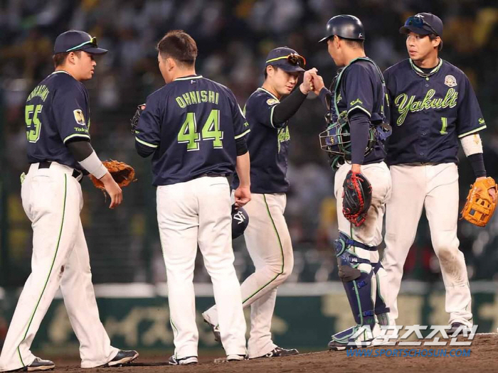 야쿠르트는 9일 효고현 니시노미야 고시엔구장에서 열린 한신 타이거즈와 원정경기를 연장 12회 무승부로 마쳤다. 0-1로 뒤지다가 7회 1-1 동점을 만든 뒤, 추가실점없이 연장 무승부로 끌고갔다.