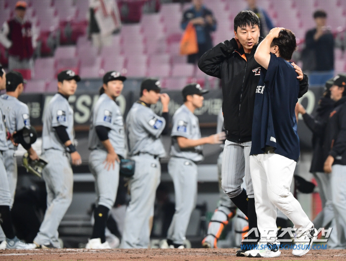 정우람은 김선빈의 어깨를 감싸 안으며 다독였다. 이윽고, 김선빈이 고개를 끄덕이며 돌아 섰지만 표정은 그대로였다.