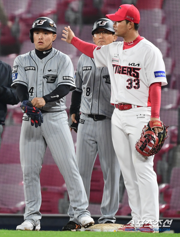 뭔가 심상치 않은 분위기를 직감한 수베로 감독은 김선빈을 향해 소리치며 주장 정우람을 불렀다. 이어서 '김선빈에게 가서 무슨 말인지 들어보라'는 손짓을 했다.