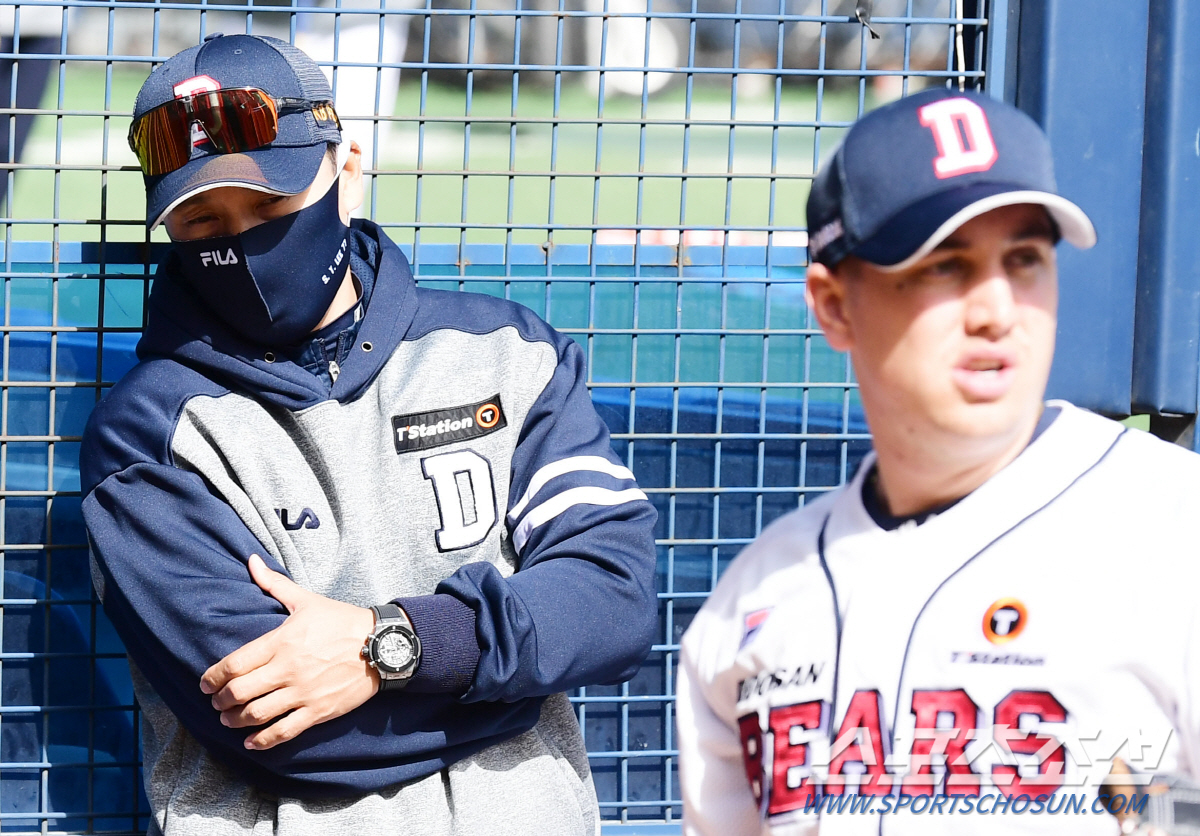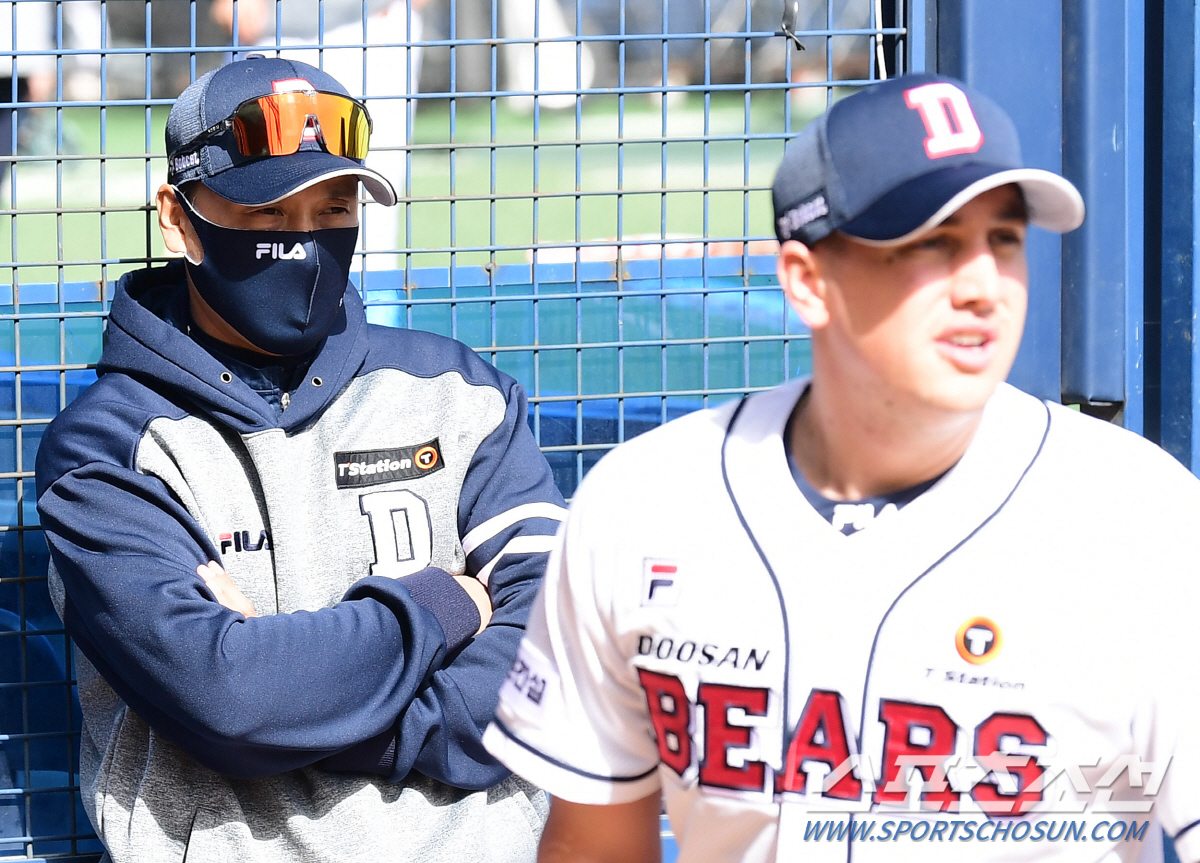 이승엽 감독은 딜런의 곁에서 투구를 유심히 지켜봤다. 컨디션에 문제가 없는지 꼼꼼하게 체크했다.