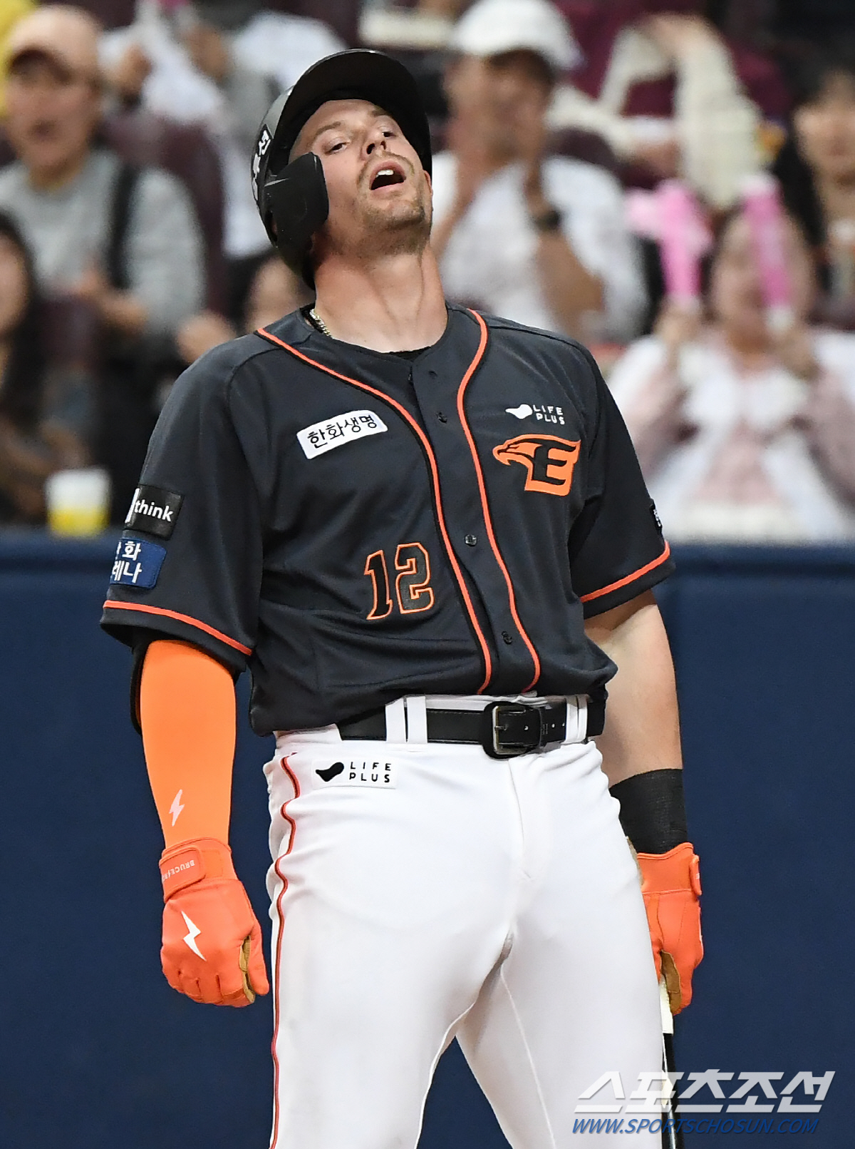 | 2일 히어로즈전 8회 무사 2 3루에서 삼진을 당한 오그레디가 아쉬워하고 있다. 고척=정재근 기자 cjg@sportschosun.com |
