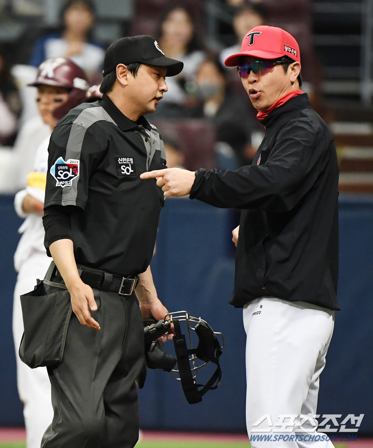 15일 서울 고척스카이돔에서 열린 KIA 타이거즈와 키움 히어로즈 경기. 3회말 1사 김동헌의 몸 맞는 볼 판정 때 김종국 감독이 항의하고 있다. 고척=정재근 기자 cjg@sportschosun.com/2023.4.15/