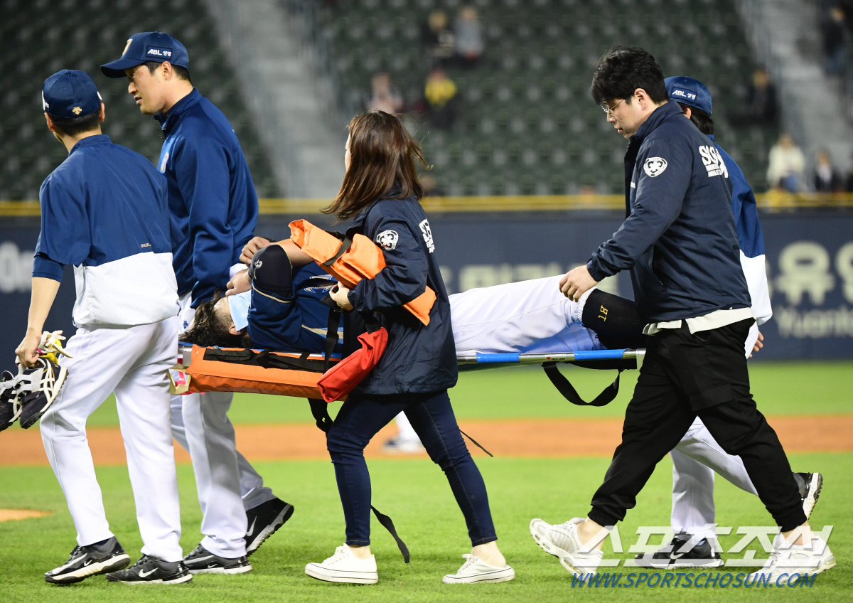 넘어진 뒤 곧바로 오른쪽 허벅지를 감싸쥐며 통증을 호소했고, 들것에 실려 3루측 더그아웃으로 들어갔다. 구급차가 들어왔으나 구급차를 타지는 않았다.