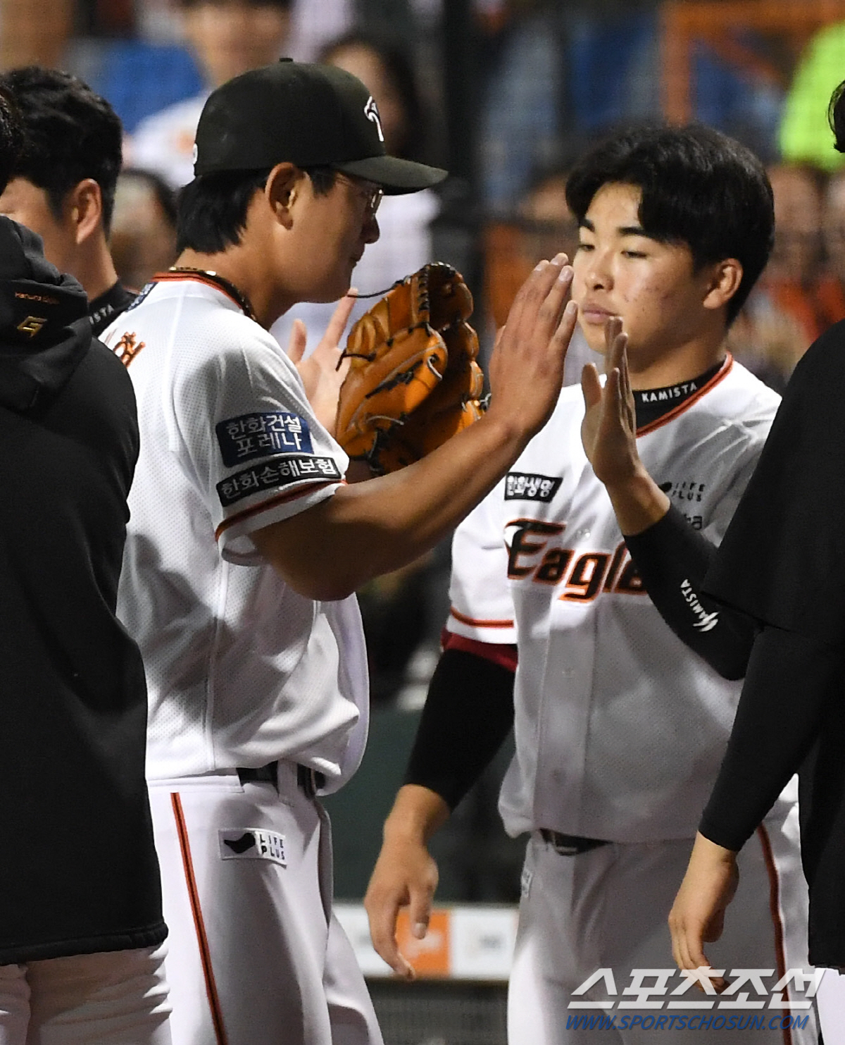 한화는 8회말 리드를 가지고 왔다. 1사 후 최재훈과 유상빈에 이어 문현빈이 볼넷을 골라냈다. 이어 노수광의 외야 플라이 때 주자 두 명이 홈을 밟으면서 한화는 7-5로 달아났다.
