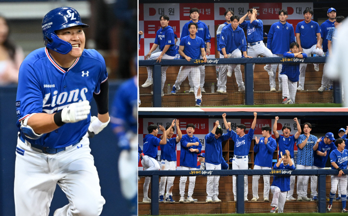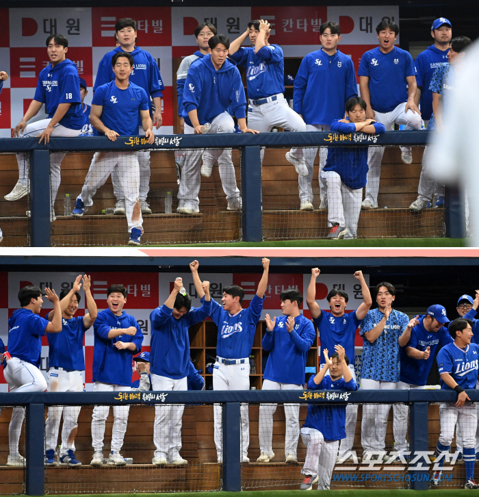 | 아웃판정에 잠시 좌절했던 삼성 덕아웃이 이내 환호에 휩싸였다. |