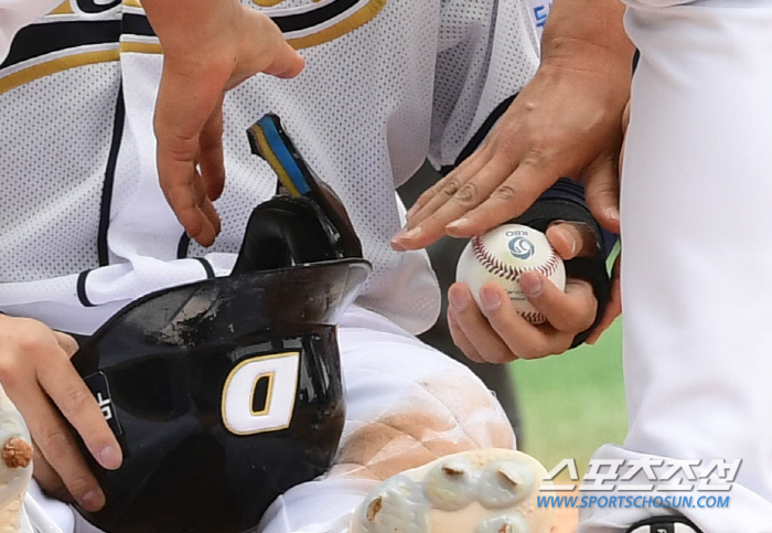 장성우는 미안한 표정을 지으며 김재환의 손에 슬그머니 공을 쥐어줬다.