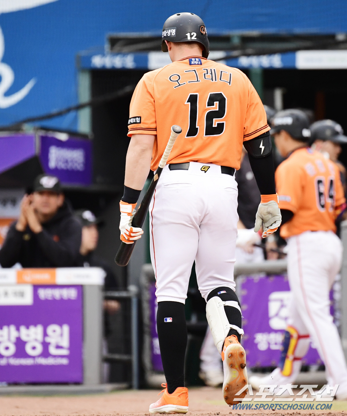 카를로스 수베로 감독은 "오그레디가 2군에서 자신의 모습을 찾아왔으면 좋겠다"고 했다. 한화가 컨택트가 좋은 마이크 터크먼 대신 오그레디를 선택한 건, 홈런 생산 능력 때문이었다.